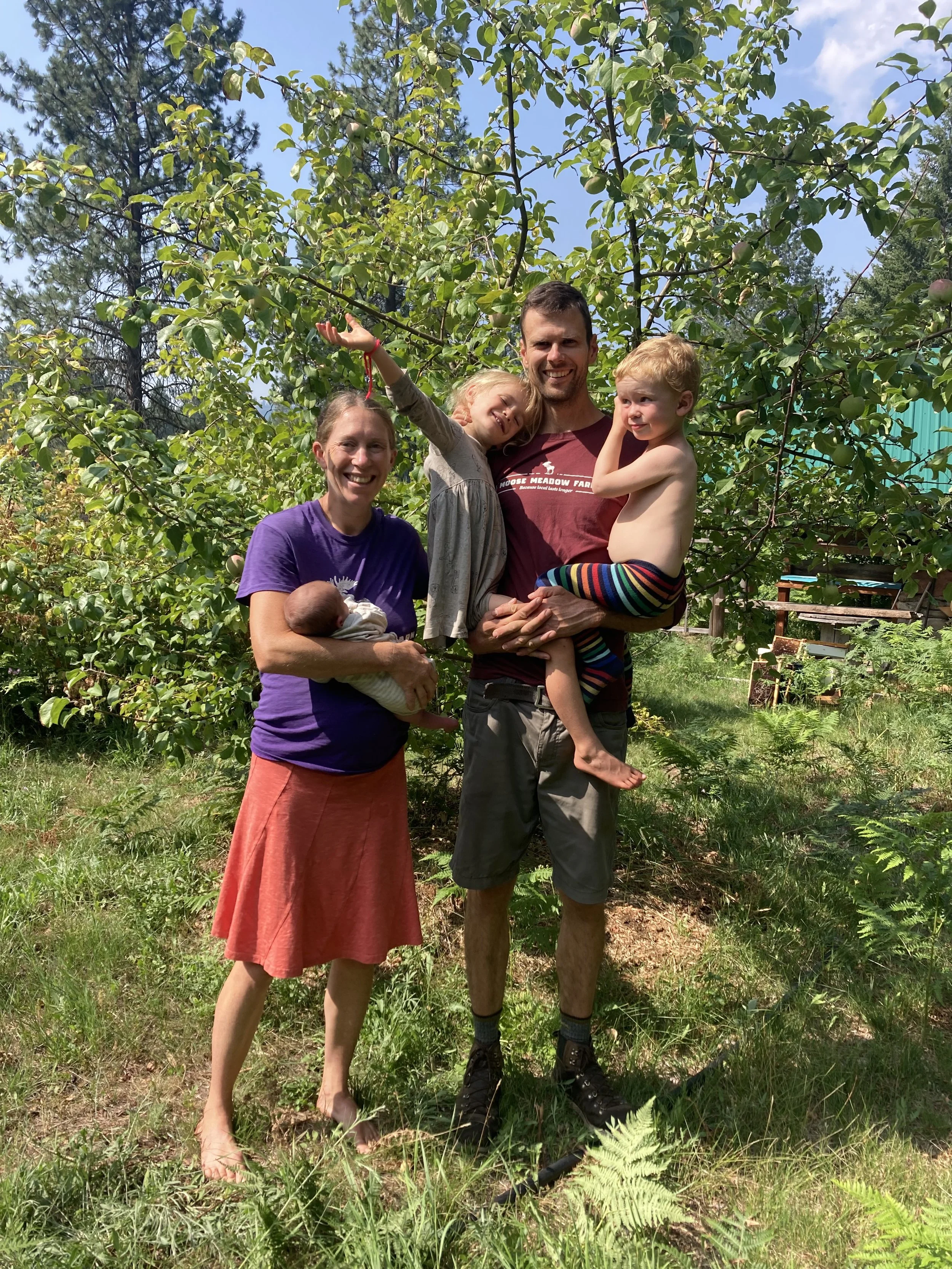 We are Katherine and Spencer Nietmann! We met at Bowdoin College in Brunswick, Maine, where Katherine was managing the Bowdoin Organic Garden and Spencer was studying biology. We both moved on to manage different farms in Maine; Spencer was the farm manager at Point Lookout Resort on the coast in Northport, Maine, and Katherine apprenticed in forestry/carpentry at Clayfield Farm in Blue Hill, Maine and then moved on to manage the agriculture program at Kennebec Valley Community College in Fairfield, ME. We moved together to North Idaho in the spring of 2016 with a combined 15 years of farming experience to Spencer's family's property in Clark Fork and started Moose Meadow Farm. We obtained organic certification right away - in October of 2016 and attended the Sandpoint Farmers Market during the summer of 2017. We have not attended any farmers markets since but instead have sought outlets elsewhere. We welcomed our daughter, June in January 2021, our son Ezra, in October 2022, and another daughter, Rosalie, in July 2025. We are honored to be your farmers, and bring expertise, enthusiasm, incredibly high standards, and delightfully sunny personalities to the business!