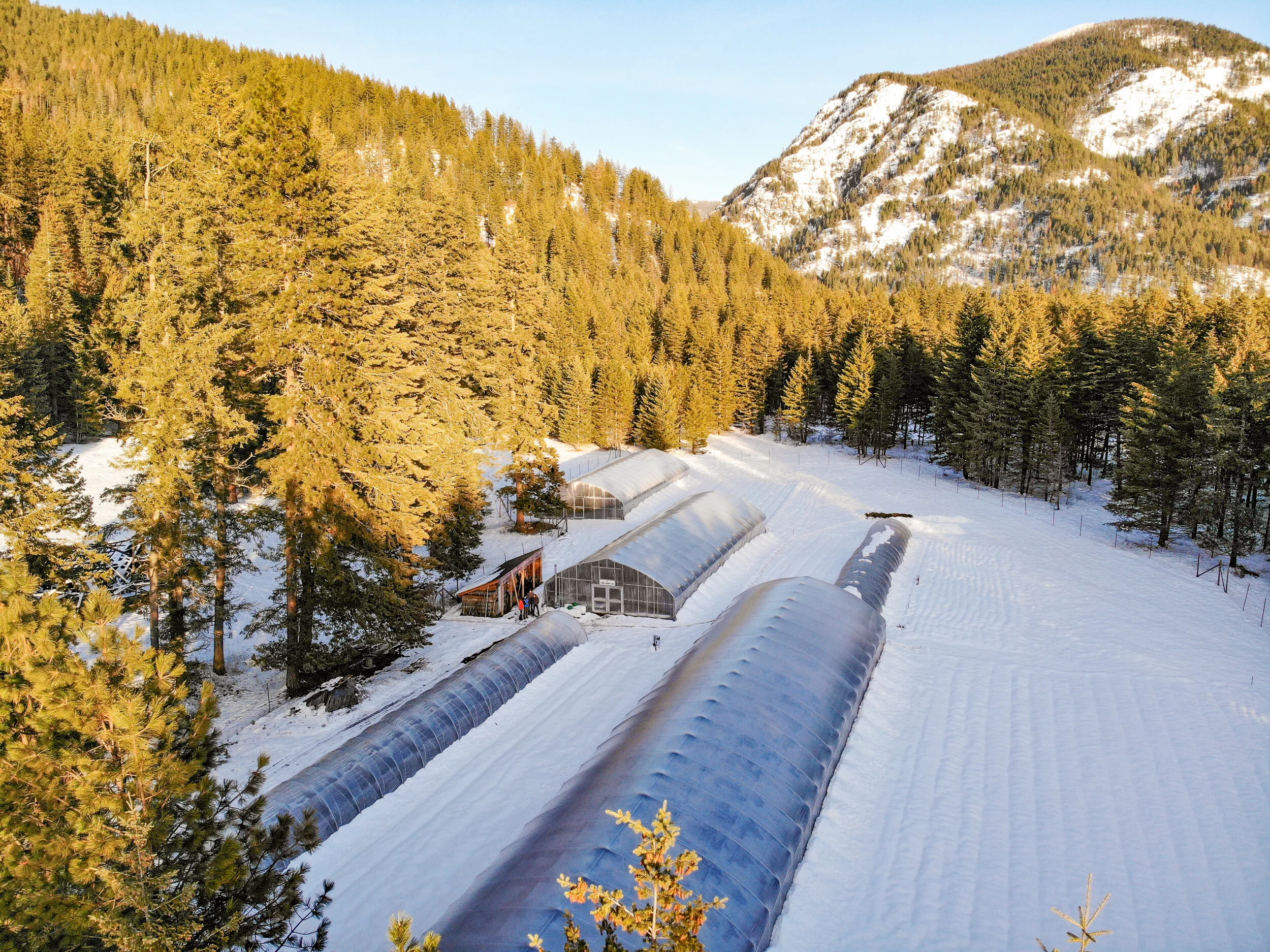 Turn right/north onto East Spring Creek Road. Go 2.5 miles. The road forks; take the right fork onto Stoney Brooke Lane (ignore the "private" signs). Go .5 mile and pull straight into our driveway. It isn't marked, but you'll see our greenhouses from the road. Park next to the gate and we'll listen for you and wave you in. The address is 539 Stoney Brooke Lane.